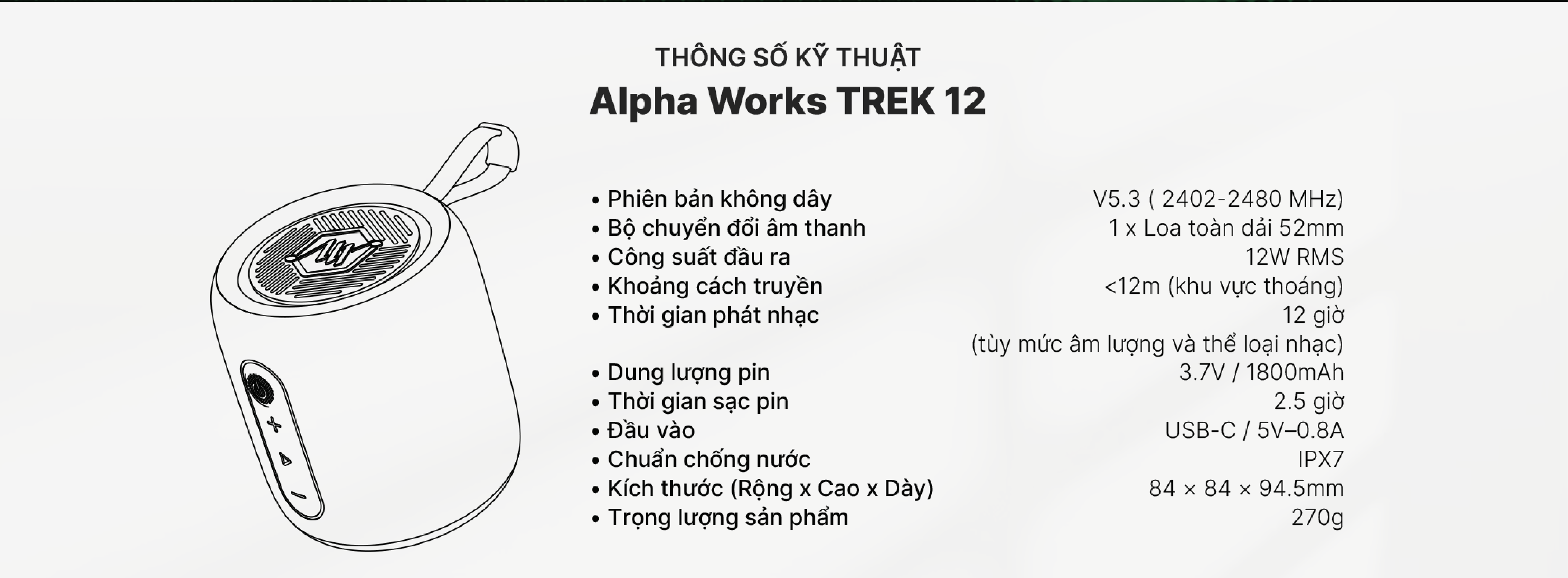 Tất tần tật về Trek 12: Chống nước IPX7, Pin đến 12h, Công suất 12W