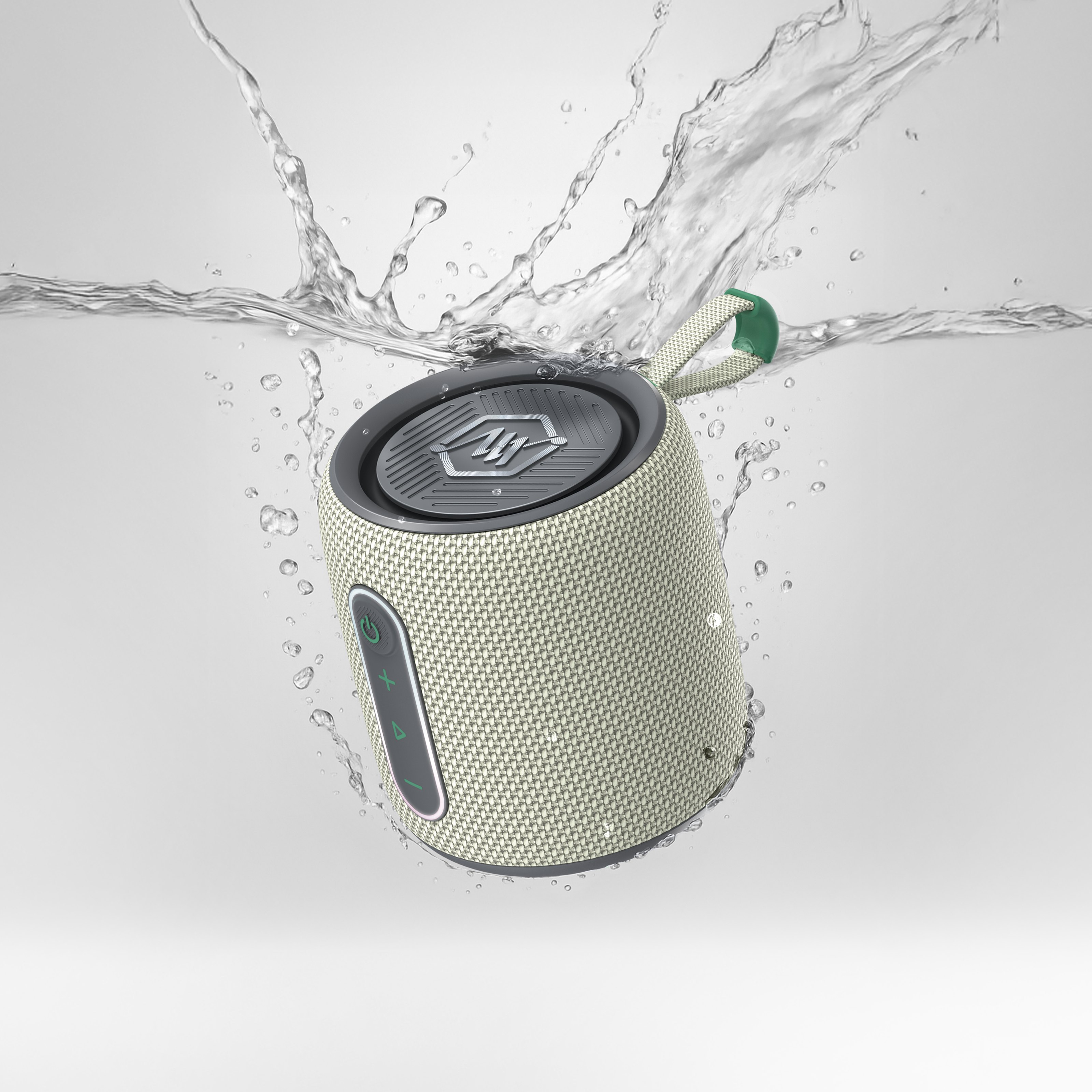 Bề mặt loa chắc chắn và đạt chuẩn kháng nước IPX7, cho phép bạn yên tâm tận hưởng âm nhạc ở hồ bơi, bãi biển hay giữa cơn mưa nhẹ mà không lo hư hại.