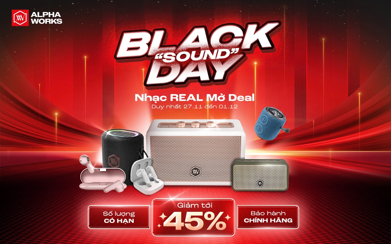 Black “Sound” Day – Nhạc Real Mở Deal là dịp duy nhất để khách hàng sở hữu các dòng loa và tai nghe Alpha Works chính hãng với mức giảm giá lên đến 45%, áp dụng trên toàn hệ thống bán lẻ và website chính thức.